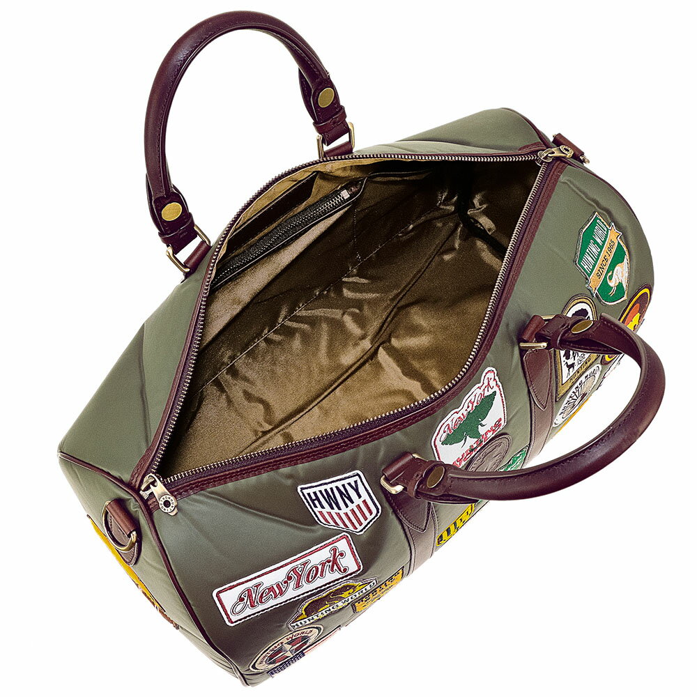 HUNTING WOLRD 7417-WS1ハンティングワールド ボストンバッグバチュークロス×レザーグリーン×ダークブラウン×ワッペン