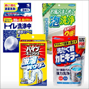 家中まるごとクリーンセット 1ヶ月分 ( お風呂まとめて泡洗浄+トイレ洗浄中+洗濯槽カビキラー+パイプユニッシュ激泡パウダーの4点セット ) ( 9900000002183 )